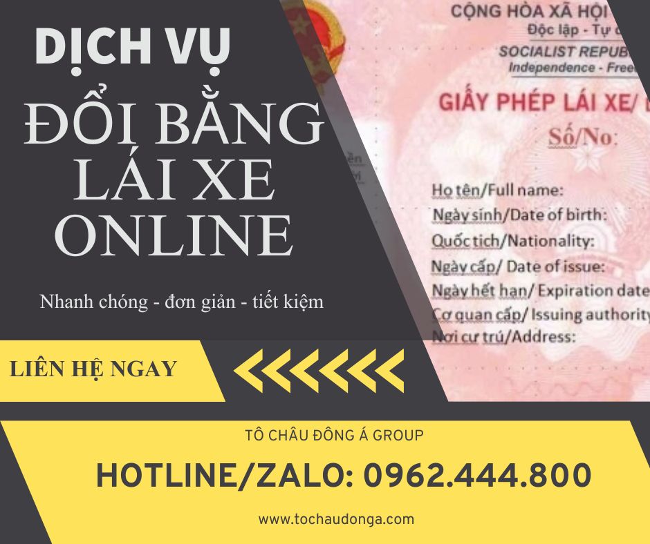 DỊCH VỤ ĐỔI BẰNG LÁI XE ONLINE TẠI TÔ CHÂU ĐÔNG Á – KHÁNH HÒA GỒM: